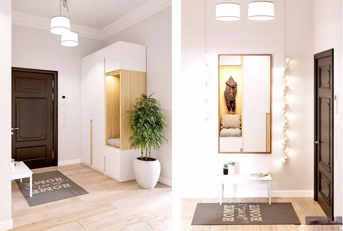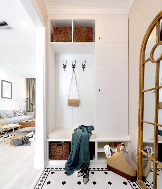 那么家里没有玄关的户型,要怎么补救?这个要分两种情况,如果进门空间比较紧凑,那就想方法放个鞋柜,实现收纳功能,如果进门空间充足,就可以设置一个隔断,实现玄关区的独立。
