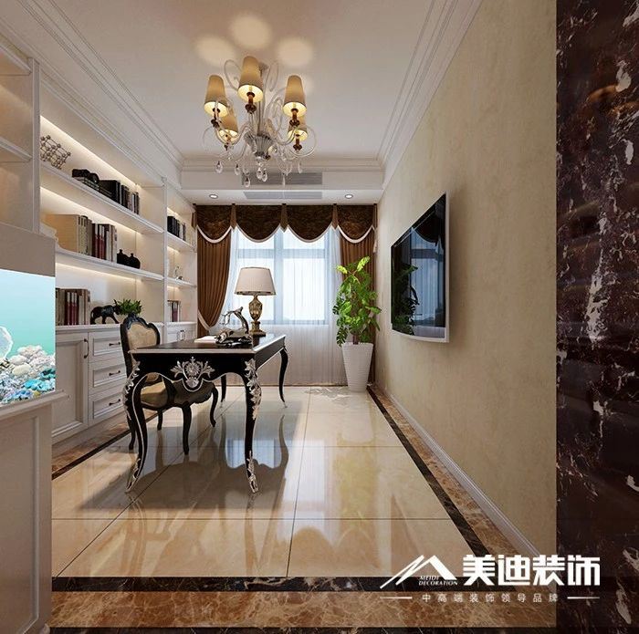 人工照明:书房内的写字台或电脑台,在台面上方应装电源线、电脑线、电话线、电视线终端接口;从安全角度考虑,应在写字台或电脑下方装电源插口1-2个,以备电脑配套设备电源用;照明灯光若为多头灯应增加分控器,开关可安装在书房门内侧。