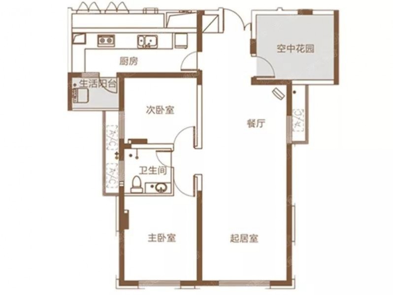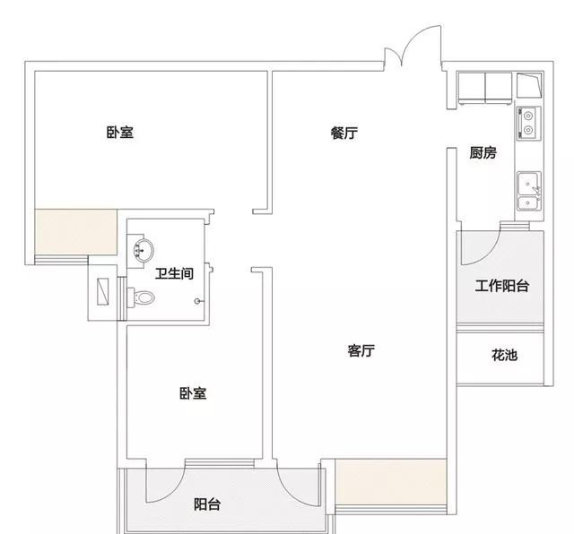 2.厨房外洗晾阳台布局不合理,厨房面积比小,需注意油烟问题。