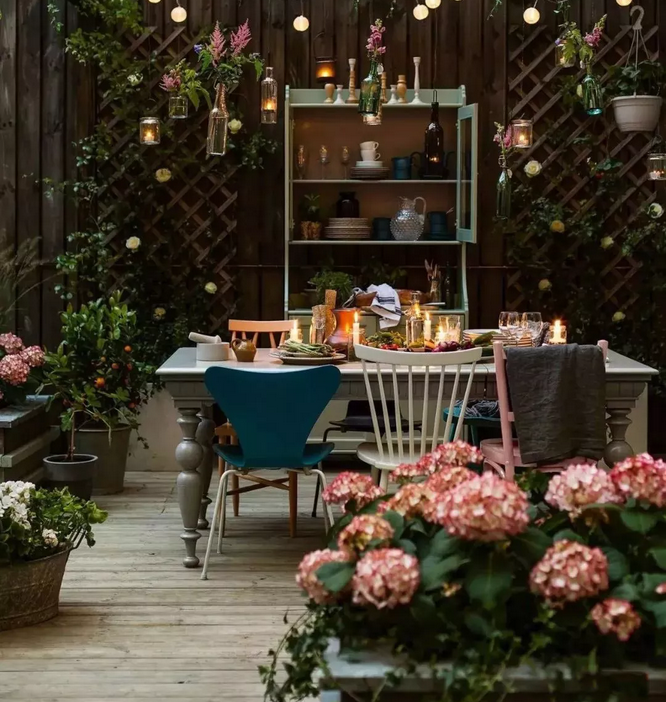 如果不想敞开式的日晒雨淋也不想做成阳光房的沉闷,可以尝试搭建一个亭子,亲近自然又好打理。