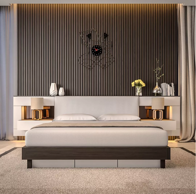 有些人为营造气氛而将床斜放且不靠墙,或为了闪避横梁而将床头悬空。床头直接悬空,或调头睡,会造成睡眠品质不好。如果因为空间的设计问题,床头没有实墙,可以用柜子代替。
