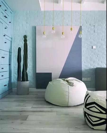 介于蓝色和绿色之间的粉蓝和粉绿是最容易营造自然清新的空间氛围,明度相对温和,也是非常适合做背景墙的一种色系。