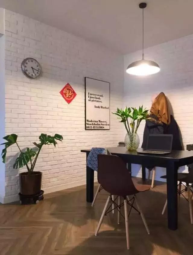 白色文化砖+灰色背景墙,文艺气息不言而喻。