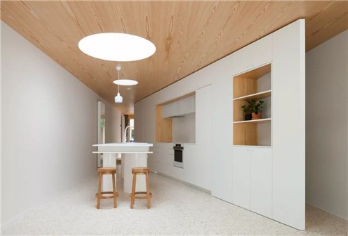 设计师在长条形状的房子内插入了一个三角形设计