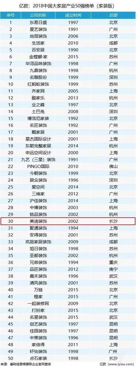 2018年5月18日,亿欧在北京举办“GIIS 2018中国家居家装产业创新峰会”,并重磅发布了《2018年中国大家居产业50强榜单》(分家装版和家居建材版)《2018年中国大家居产业新公司50》三个榜单。(美迪装饰)