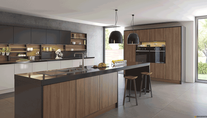 智能厨电都知道吧,是现代家庭的厨房必备之物了,像烤箱蒸箱以及消毒柜等都是可以镶嵌到橱柜里的,但是有一个要求,那就是先量好厨电的尺寸,以免柜子大小与厨电大小搭配不上,一切都是白搭;另外,家里想要设计地柜的,在地柜设计上也可以有花样,比如设计成那种可以将小家电收纳起来的地柜,要用的时候讲屉子拉出来,不用时又推进去,外观上十分整齐干净。