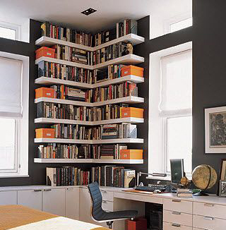 2、这样的创意书柜你也可以有一个,完美的和墙面融为一体,设计巧妙,更显活力。