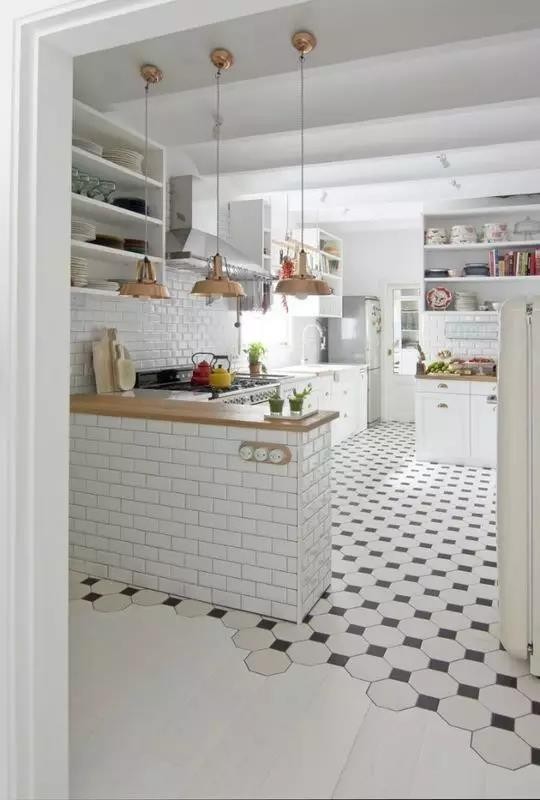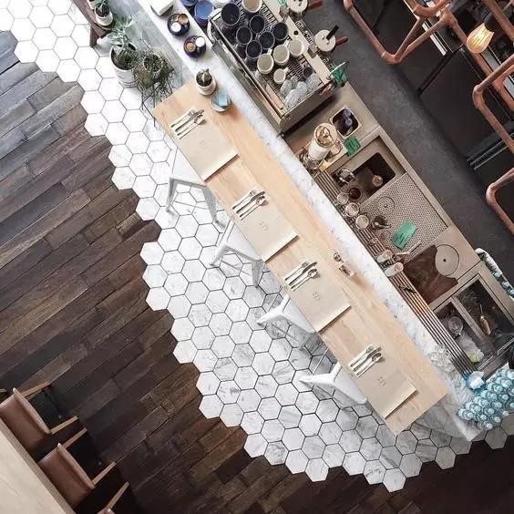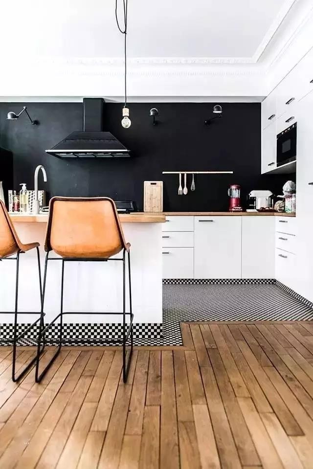 比如厨房和餐厅就是最适合用瓷砖和地板拼接的区域,厨房多油烟,不适合铺木地板,比较难以清理,铺瓷砖就方便很多,瓷砖的油污相对来说就很容易清理了。