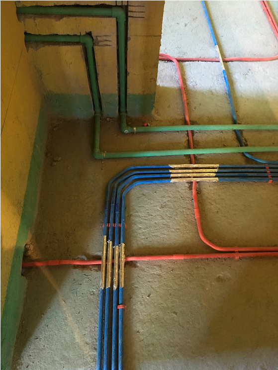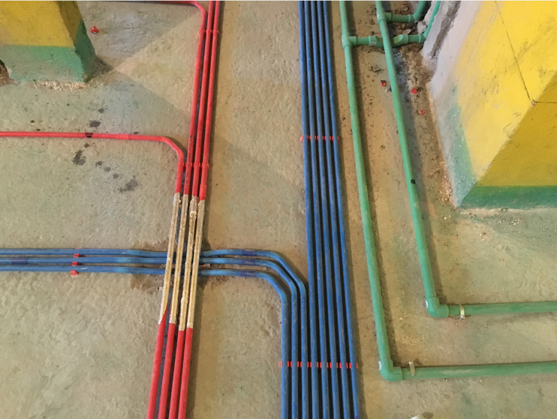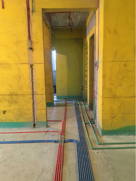 水电维系着整个家庭日常生活的运转,其好坏直接影响着者居住的体验感与幸福指数。。在水电施工现场中,各管道横平竖直,色彩鲜明,这也让工地本身成为了一件艺术品。