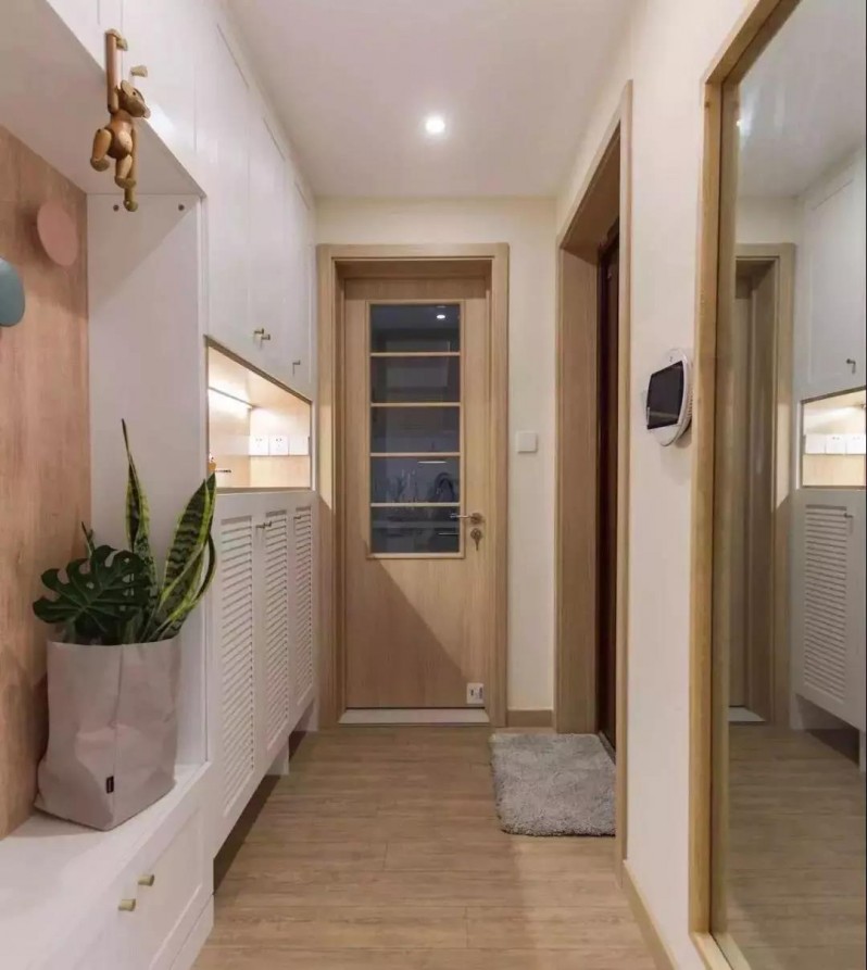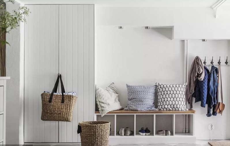 鞋柜可以选择定制,觉得费时间的话,成品鞋柜也是个不错的选择。有不少人说,家里玄关宽度太小了,该怎么办呢?建议有这种情况的亲,可以选择将鞋柜入墙,留出足够的活动空间。