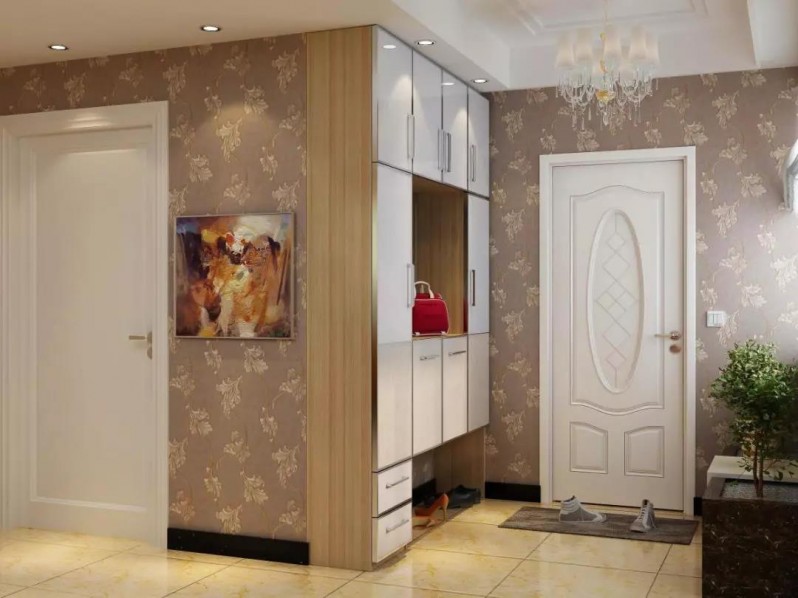 比如,增大玄关的收纳储物功能,把端景柜、鞋柜、衣柜、换鞋凳、换衣镜等合理搭配布置,让玄关成为一个具收纳、装饰于一体的功能区。