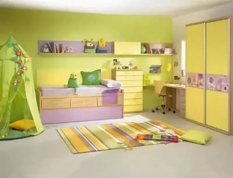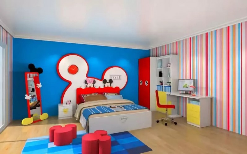 色彩宜明快、亮丽、鲜明,以偏浅色调为主,尽量不取深色。橙色及黄色带来欢乐和谐,粉红色带来安静,绿色与大自然最为接近,海蓝系列让孩子的心更加自由、开阔。红、棕等暖色调给人热情、时尚、有效率的感觉,用这些来区分不同功能的空间效果最好,过渡色彩一般可选用白色。