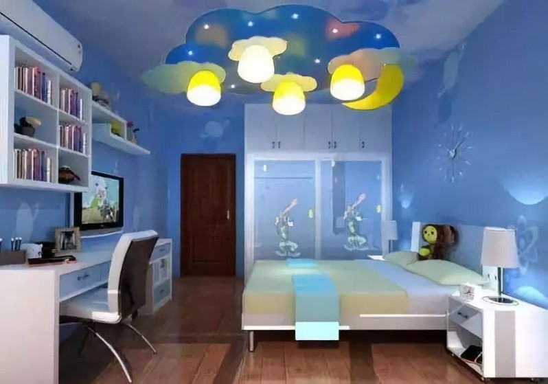 适合且充足的照明,能让房间温暖、有安全感,有助于消除小孩独处时的恐惧感。儿童房的全面照明度一定要比成年人房间高,一般可采取整体与局部两种方式。