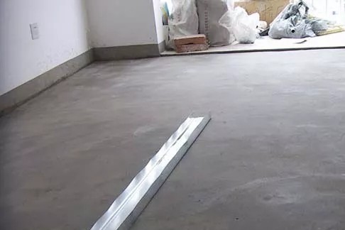 ▲ 用长尺检查地面是否平整