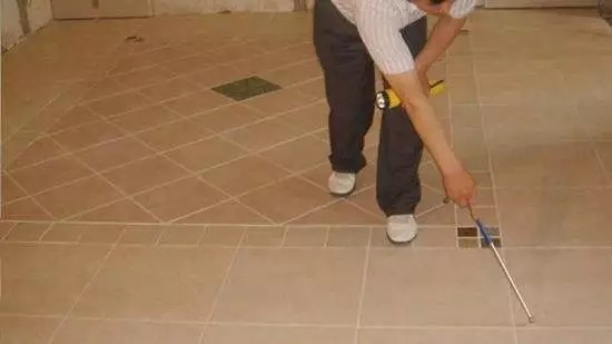▲ 敲击检查瓷砖是否空鼓。