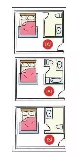 厕所门不要直接对着床,强风倒灌的时候,湿气晦气都会吹到床那边,影响主人的健康。