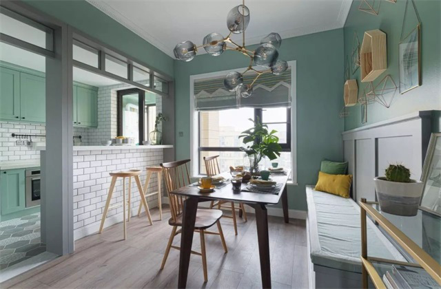 室内每一个空间之间并不是完全独立的,相互之间应该有更多的互动。类似这样在厨房开个窗洞,能享受开放式厨房的优点,比如视野好、采光好、互动好,又可以通过窗户或者玻璃来隔绝油烟问题。想象一下一家人有人在做饭,有人在餐厅摆餐具,孩子在客厅玩耍,都能相互看到,家庭温馨感提升不少。
