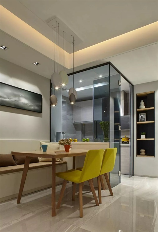 ▲ 实墙换成玻璃隔断,介于开A放式和封闭式厨房之间
