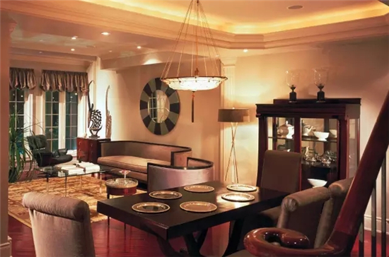 一般来说,客厅需要布置得庄重大气,宜用明亮的吊灯或吸顶灯。空间较大的话,选择圆形吊灯比较不错。