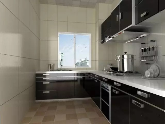 通常操作台的高度为80~85厘米;水槽两侧一般应各有一个长40~60厘米的台面,一边供放置未洗过的菜,一边放置洗过的菜;如果餐桌不在厨房里,那么灶台边上还应设一块40~60厘米长的台面,用来暂时放刚出锅的菜。橱柜的背面要做挡水板,即背面要高出台面一些,以防止水流到橱柜的背面,使基材膨胀,造成开裂、脱落等现象。