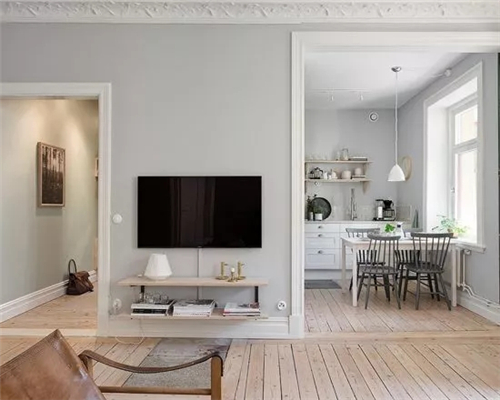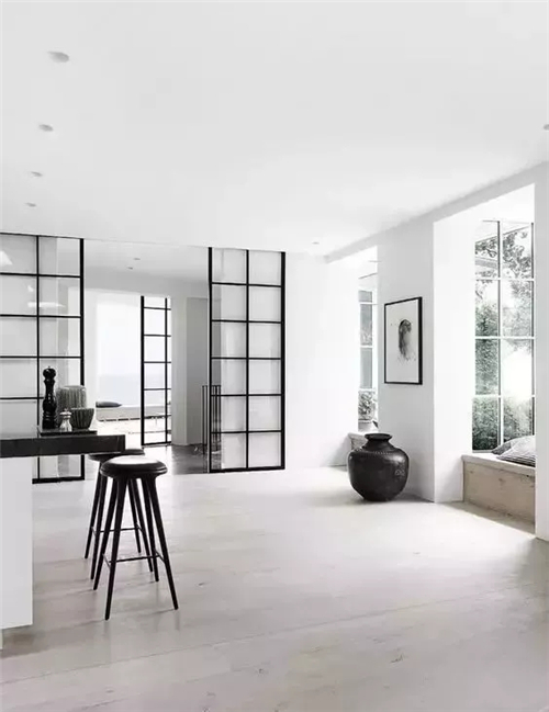 用石膏板或者各种饰面板压住地面,遮挡住地面缝隙,让整面墙成为踢脚线。整个空间的线条会显得更加简洁利落,充满现代感。
