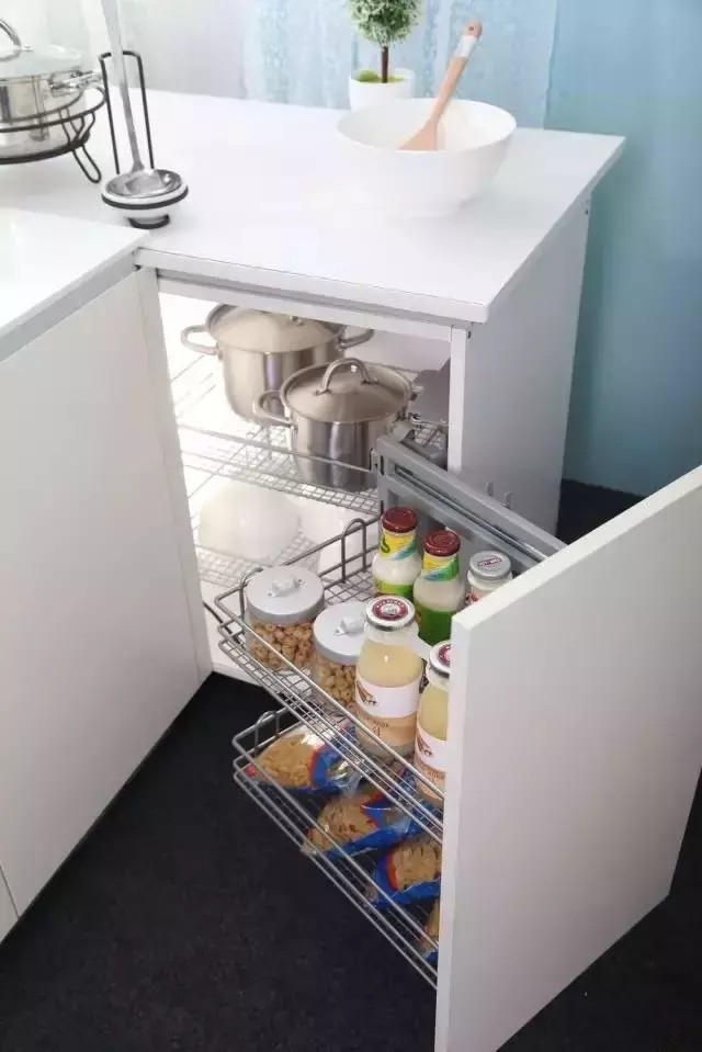 转角拉篮绝对是个好东西,沥水方便,拿取也方便,很多人做成抽屉放碗碟,时间长了长期接触水渍,肯定会发霉。