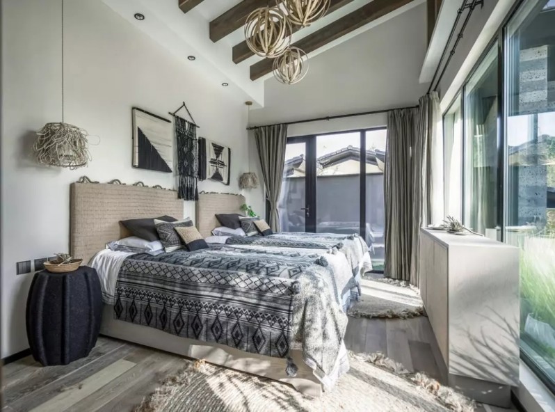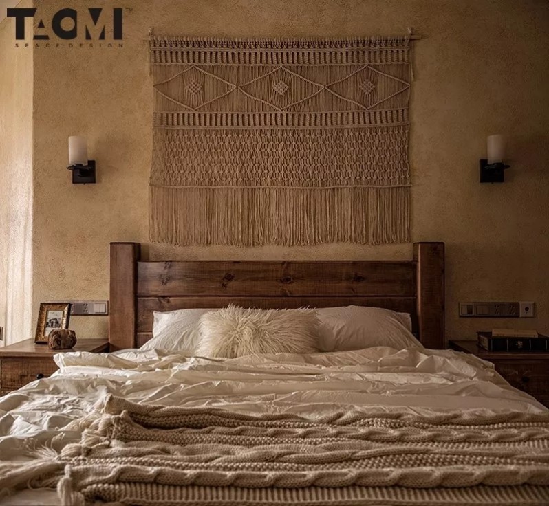 近年来很受欢迎,特别是民俗运用最多。原木,或做旧的肌理,配以原生态挂饰,呈现出质朴与返璞归真的独有气质。