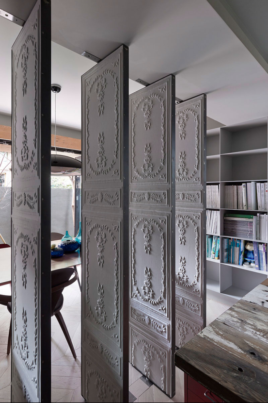 你以为这边是墙吗?那你肯定错了,其实整个屋子都是屏风的设计。只要一触动开关,就可以轻松将整个屋子链接在一起。