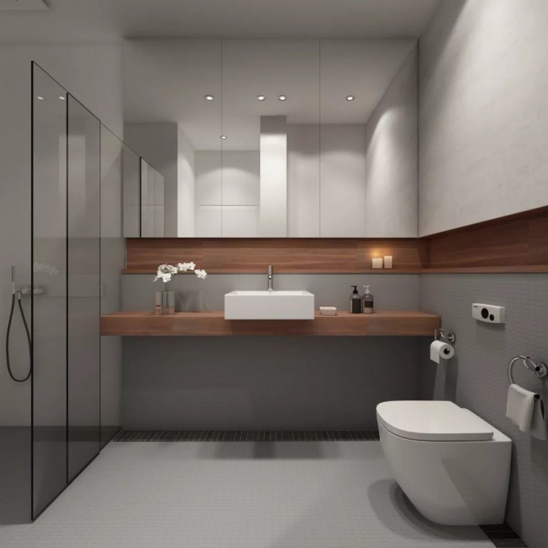 长方形的卫生间可以像下面这样布局,遵循了逐步深入的布置法。