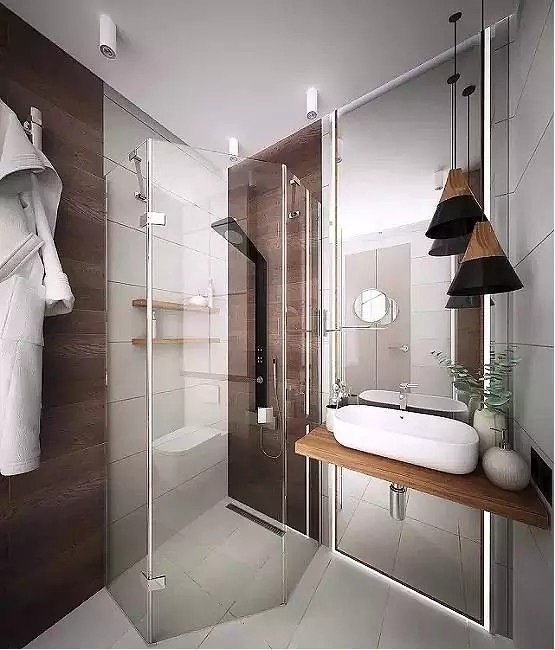 卫生间小就可以直接划分为淋浴、马桶、洗手台三个区域,择合适的摆放位置,不仅进出方便,还能增强空间感。