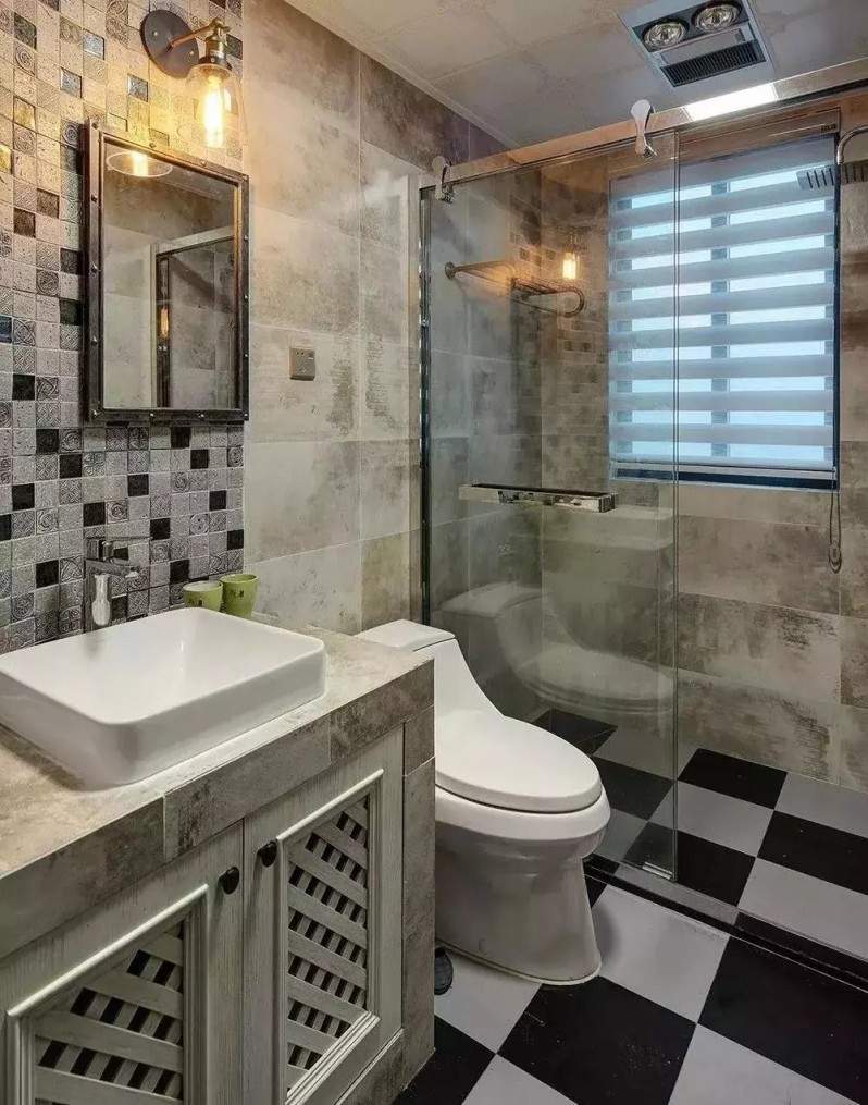 矮墙和玻璃隔断组合在一起的方式,防水能力也很好,干区湿区分明,而且矮墙还能展现出不一样的风格,更有特色!
