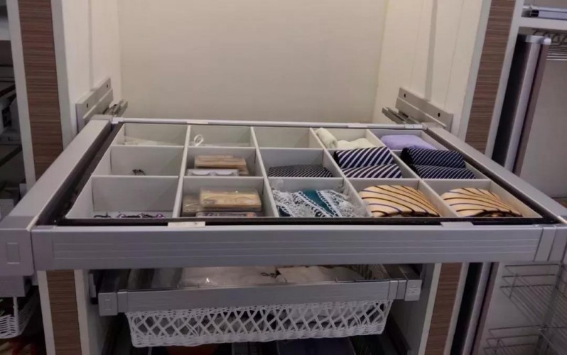衬板:将衣物或配饰放在带滑轨的推拉衬板中,搭配、取用一目了然。