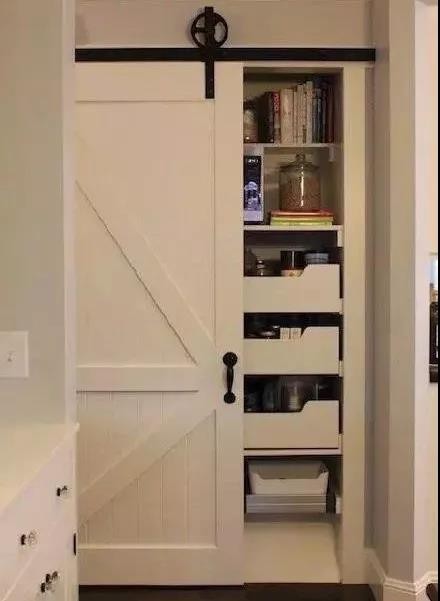 柜子里乱糟糟的不想被人看到,让漂亮的谷仓门来拯救你,除了门的功能外它还是一件装饰品,一个门让家变得不一样,我们不一样!