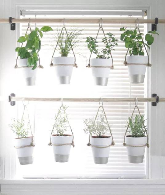 此外,用来悬挂盆栽也是不错的选择,不仅大大节省了空间,还能让植物更好的进行光合作用,木质窗帘架搭配绿色植物十分小清新,让你在室内也能享受大自然。