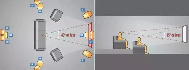 那我们看电视的时候应该距离电视机多远呢?来自THX的音视频专家报告说,最佳观看距离是显示器占据观众大约40度视角的左右距离:“最小观看距离设置为近40度视角,最大观看距离设置大约28度。”