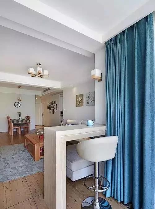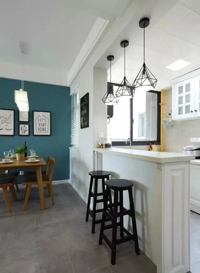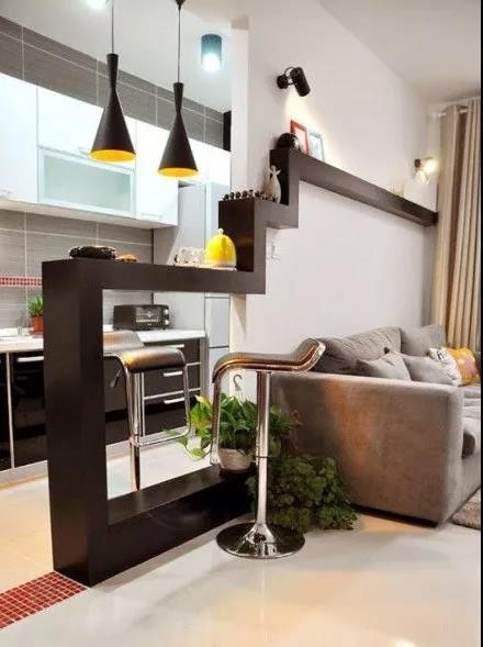 #隔断# 在小户型用餐区域中的吧台,不仅是一个用餐区域的完美隔断,那种一边看着美食烹饪,一边等待的幸福感,这也是属于家的仪式。