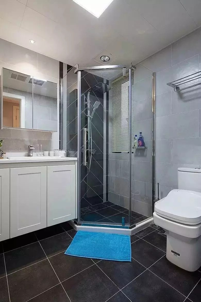 卫生间作为比较潮湿的区域,细分之下可以把卫生间分为淋浴区与梳妆、如厕区等,这些分区中,除了淋浴区比较潮湿以外,其他区域日常活动比较频繁,如果地面潮湿的话就存在滑倒的安全隐患,所以干湿分离的卫生间设计在现代装修中已经成为常态。
