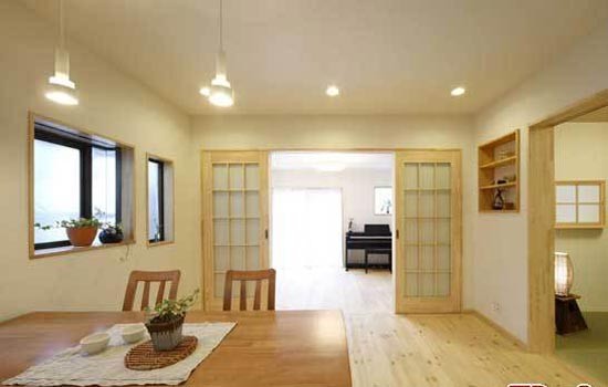 3、日式家居中强调的是自然色彩的沉静和造型线条的简洁,和室的门窗大多简洁透光,家具低矮且不多,给人以宽敞明亮的感觉。