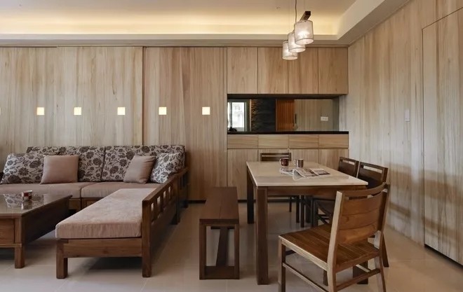 众所周知,日本人在传承汉唐文化的过程中,逐渐地将禅文化的自然本色融入到了生活中。所以日式家具也是尽量保持其原来的色彩。家具以及地板等大多数日式家居都是采用原木色系。也会使房间整体呈现一种暖意,原木色有一种自带遗世独立的韵味。