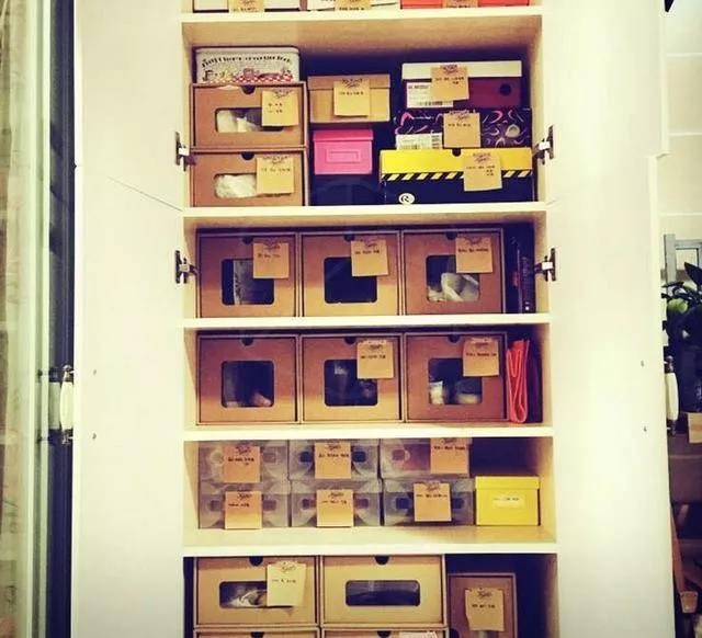 将每双鞋放在一个盒子里,干净整洁。为了防止找不到可以在盒子外面贴上便利贴或是那双鞋的照片。