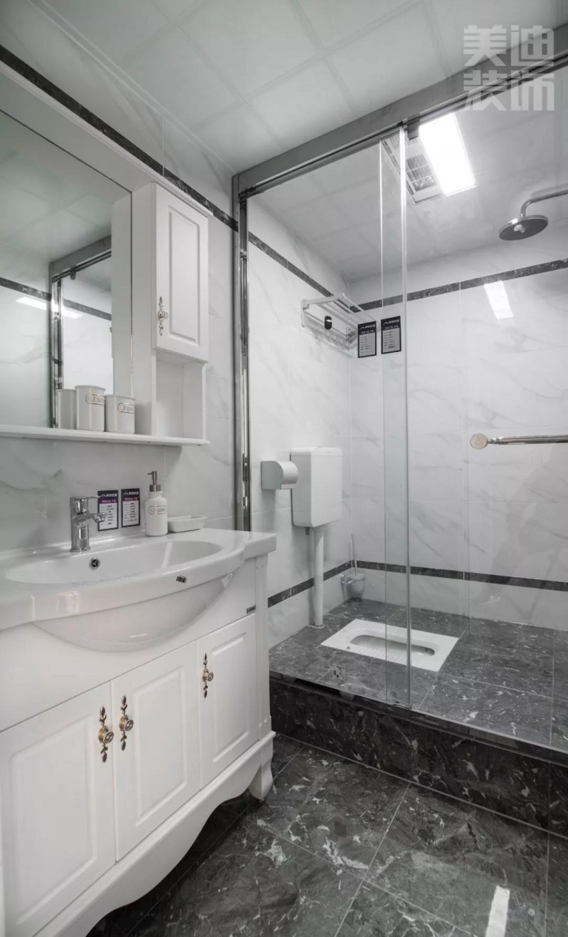 卫生间简单素洁,以白色为主,宽敞明亮,干湿分离,让整个空间更加整洁,打扫起来也更方便。