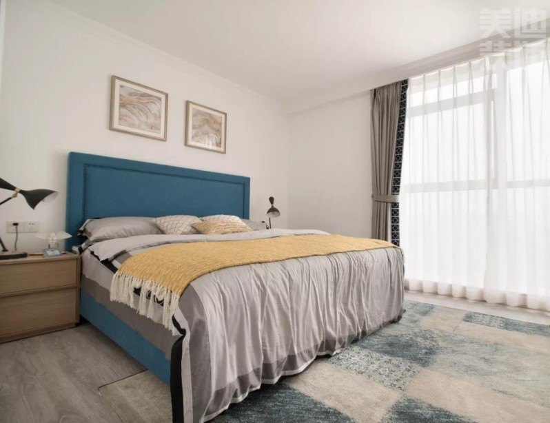 同样浅色温润的色调一直延续至主卧,以温馨舒适的格调搭配,极力营造暖心的睡眠空间。