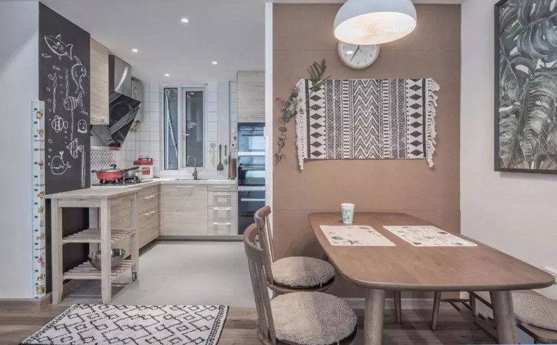 木作餐桌餐椅,搭配白墙,清新美观。