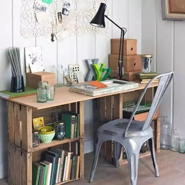 ▲ 条板箱+搁板的组合=小书桌