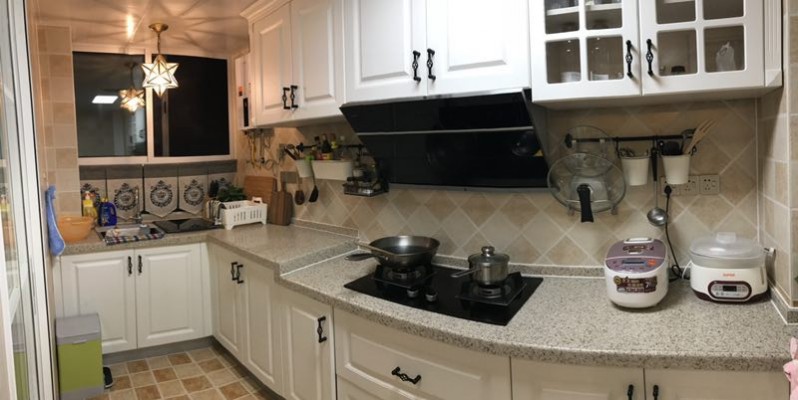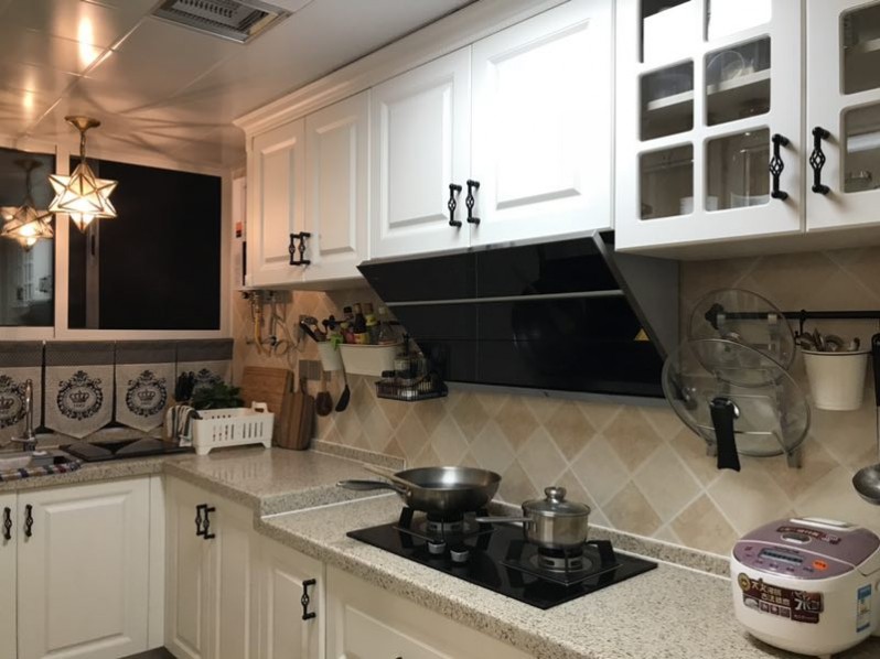 封闭式厨房,选用高品质的抽油烟机以及模压板橱柜解决厨房油烟问题。