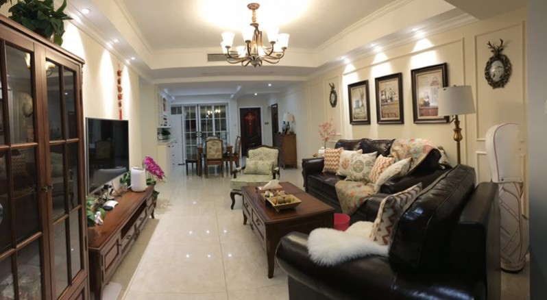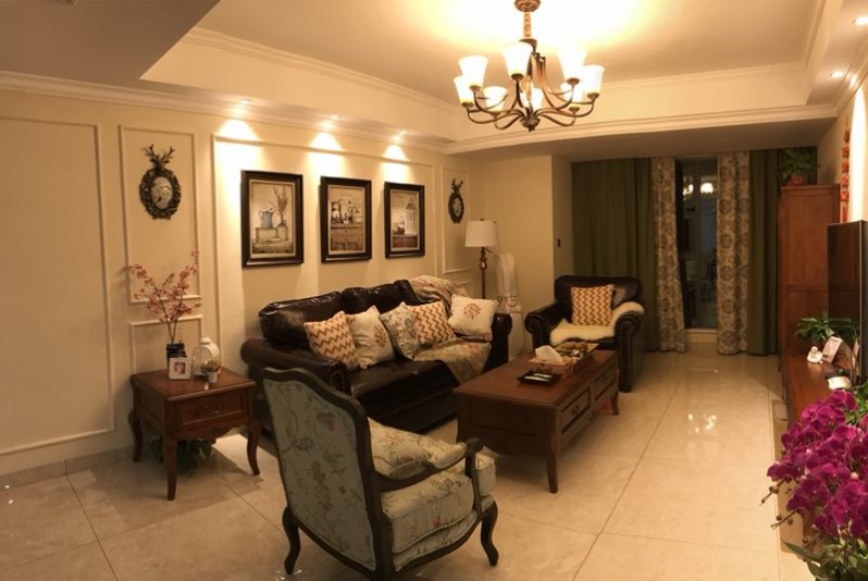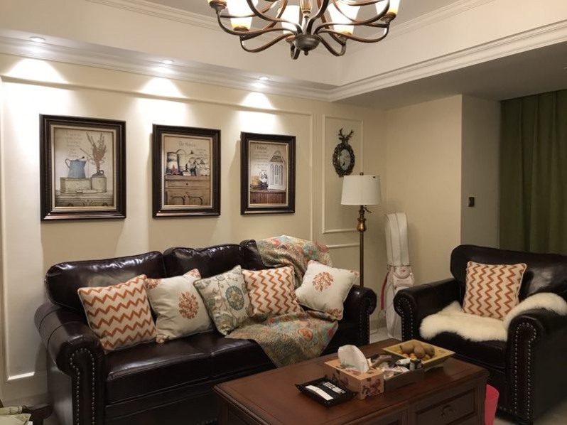 业主杨姐是第一次装修,自己也不知道喜欢什么装修风格。设计师刘丽娟在与杨姐的沟通过程中,发现杨姐喜欢深色家具,同时考虑到她的年龄与活波开朗的性格,最终设计成小美风。客厅处皮质的沙发配上花饰棉麻布艺单人椅,沉稳中带着随性自然,在灯光的照射下,温馨的客厅让人一眼就被吸引。