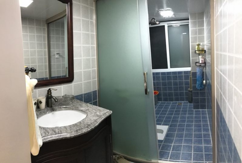 原始卫生间有突出的墙体导致空间变得狭窄,同时设计师通过后期隔出一个衣帽间,将整个墙进行拉平,户型更加方正。