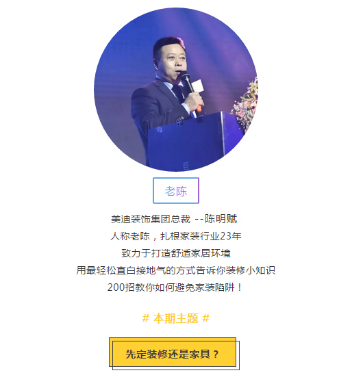 本期老陈跟大家聊聊买了新房后,到底是先定装修还是先定家具呢?这个问题让很多刚买房子的业主非常纠结,有人说要先定装修后定家具,有人说要先定家具后定装修,那到底新买的房子没有装修前,我们到底该先走哪一步呢?