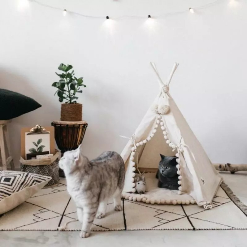 猫咪印第安帐篷,不仅搭配客厅美观性十足,功能性杠杠的!