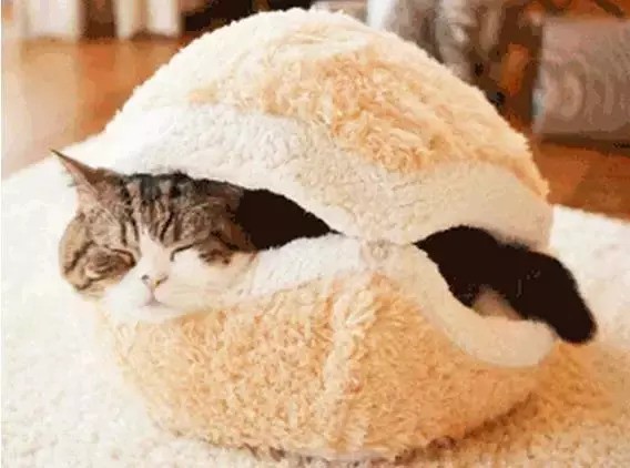 △汉堡包一样的小窝,就适合懒懒的猫咪!